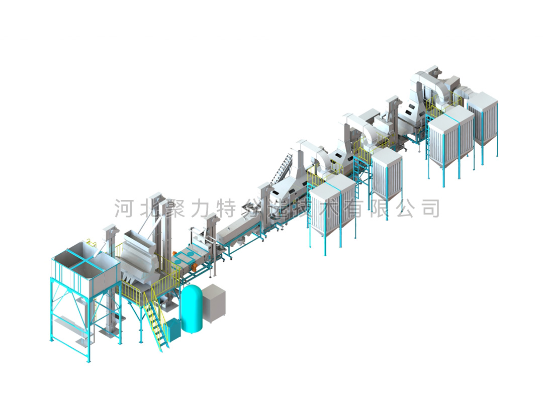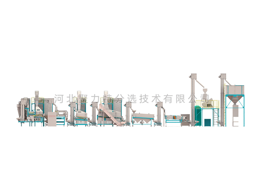 豆類清理生產(chǎn)線由風篩清選機、磁力選土機、比重去石機、比重精選機、拋光機、振動分級篩、定量包裝秤、脈沖除塵器、布袋除塵器、提升機和其他輔件組成。