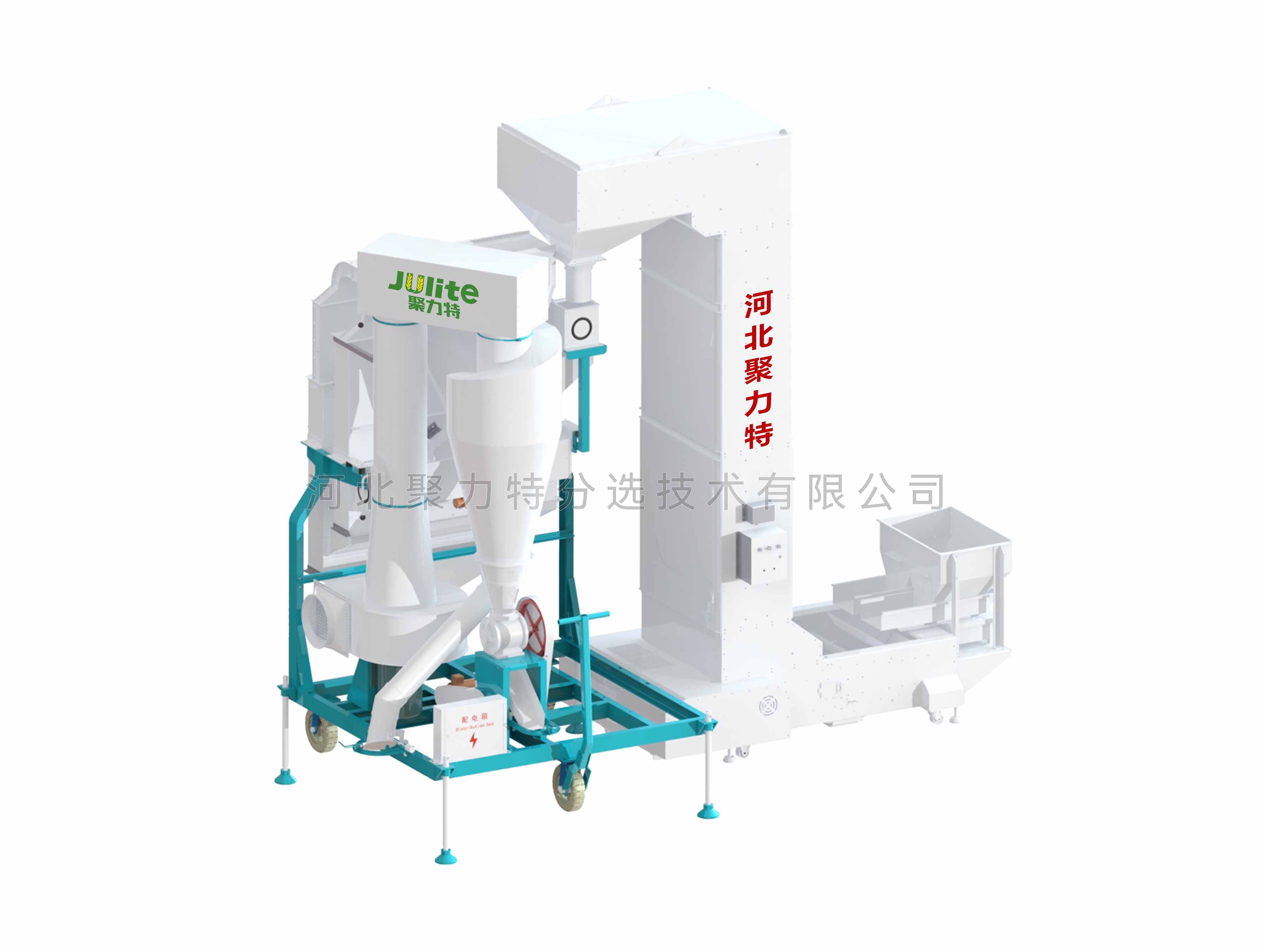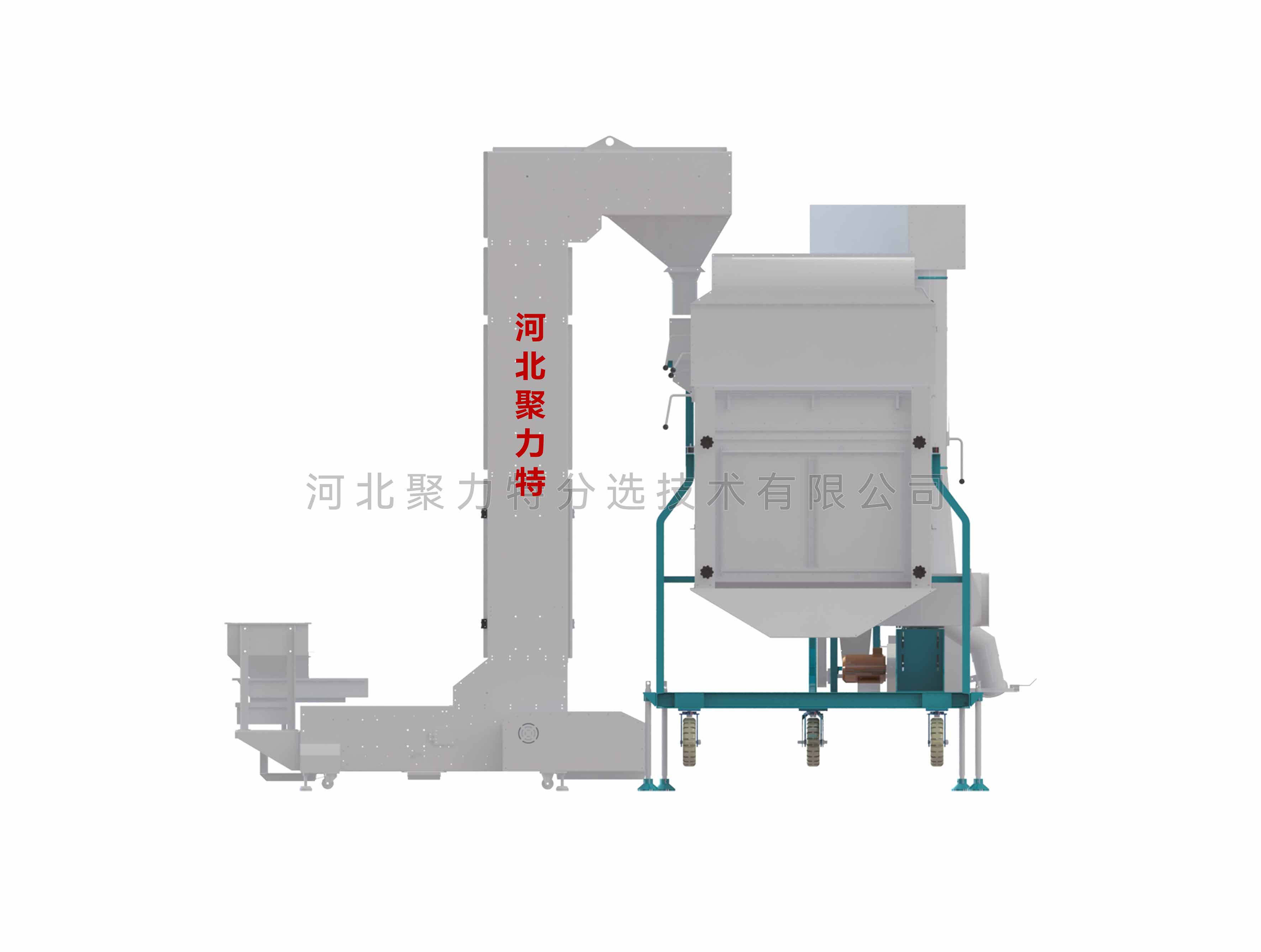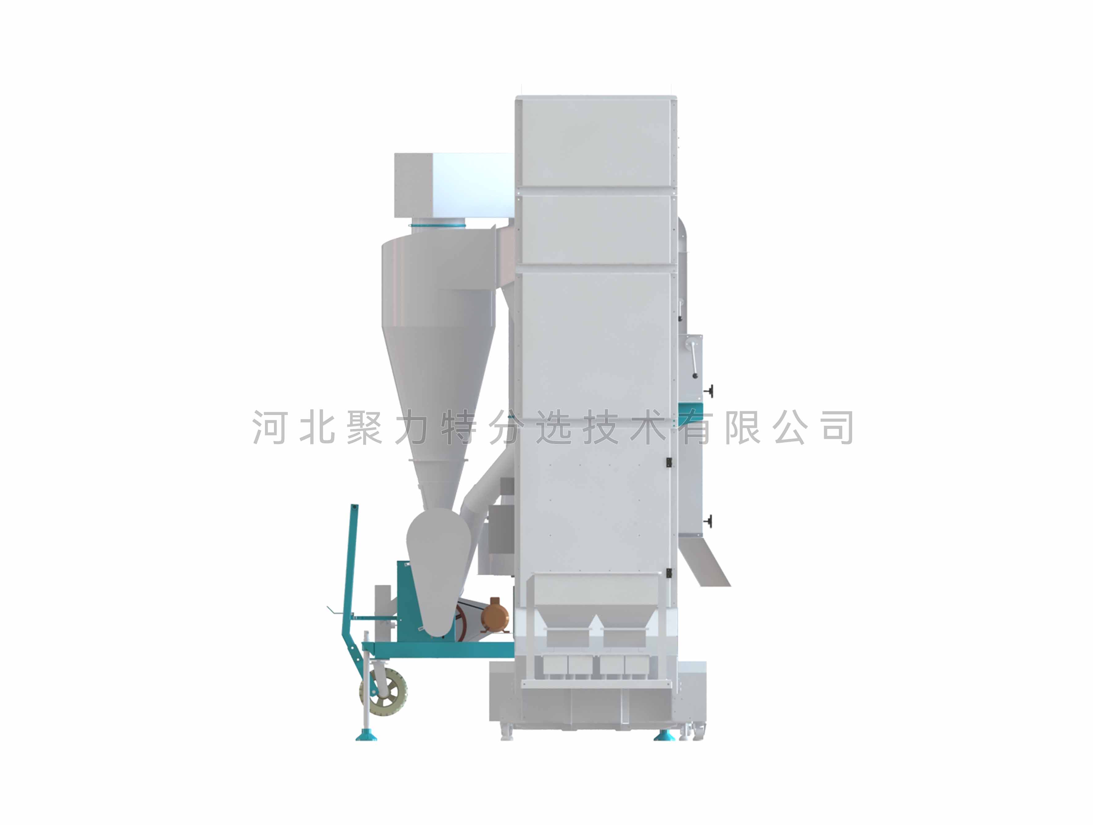 物料經(jīng)過Z型提升機進入散糧箱,散糧均勻后進入立式空氣篩,在風力的作用下分離出輕雜質(zhì),經(jīng)旋風除塵器過濾后,由閉風器排出。成品通過出料口排出,進入下道工序。